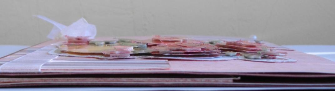 Основной элемент-3D картинка. Использовала двухсторонний кардсток, полубусинки, ленточку и бусинки. Внутри надпись тоже на объемном скотче.Розочки украшены розовым и красным глитером.